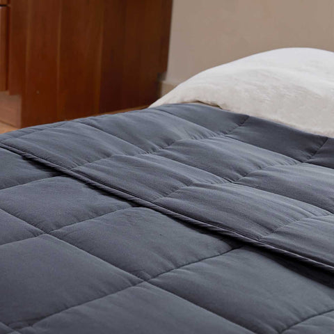 If you’re looking for something a bit simpler but still effective, this Cotton Weighted Blanket is the right choice. It’s a durable, luxurious cotton blanket that’s ultra-soft and highly breathable. It’s filled with fine-grade standard glass beads but it’s not noisy or difficult to use.