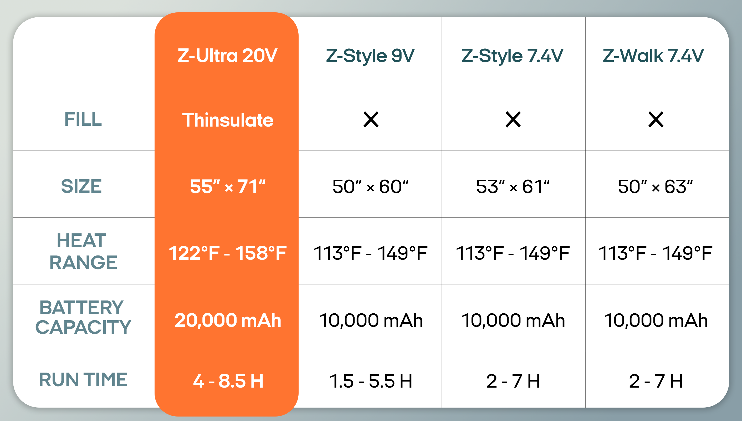 - Premium Fill: Thinsulate™- Weight: 3.34 lbs- Size: 55*71in- Temperature control: 158°F / 140°F / 122°F- Runtime: 4 - 8.5 Hours(Up to 8.5 Hours- Machine washable