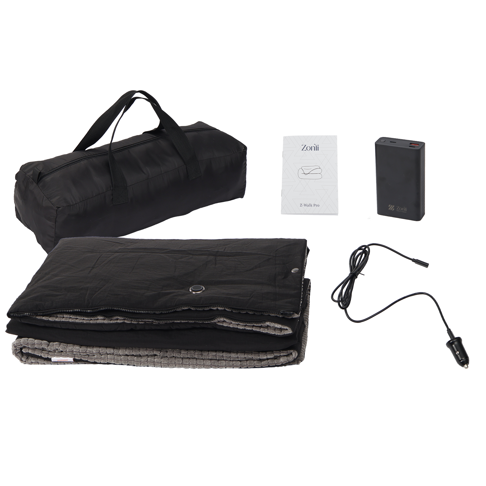 1 x Heated Blanket1 x Free 20,000mAh Battery1 x Extension cord1 x Car Adapter 1 x User Manual1 x Storage Bag